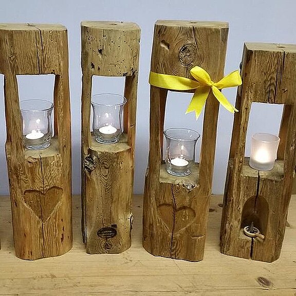 Für eine ansprechende Verschönerung Ihres Wohnraums bieten wir Ihnen Windlichter aus alten Holzbalken, die Ihrem Zimmer ein Gefühl von Wärme und Behaglichkeit verleihen.