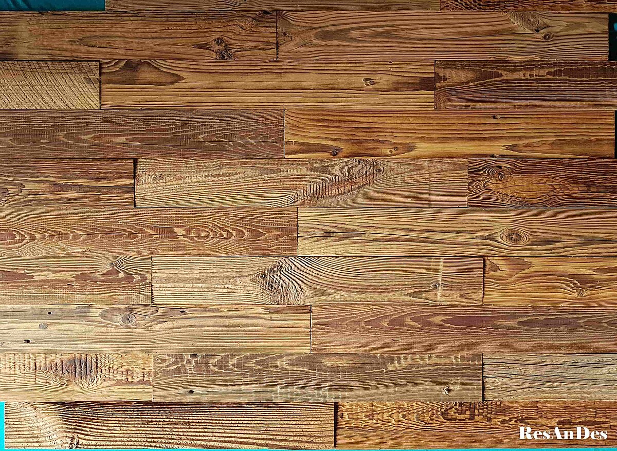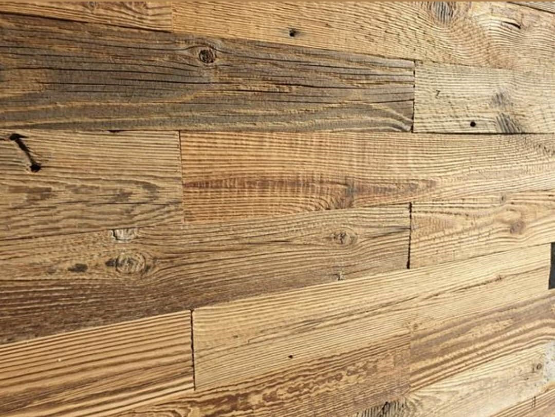 Bei uns erhalten Sie sonnenverbrannte Altholzbretter und Echtholzriemchen als Wandverblender.