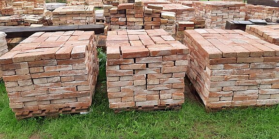 Beide Formate werden nach dem Rückbau sorgfältig durch uns gereinigt und von alten Mörtelresten befreit. Die historischen Ziegel sind dadurch als authentischer Baustoff mit lebendiger Oberfläche und natürlichem Farbspiel wieder voll nutzbar.