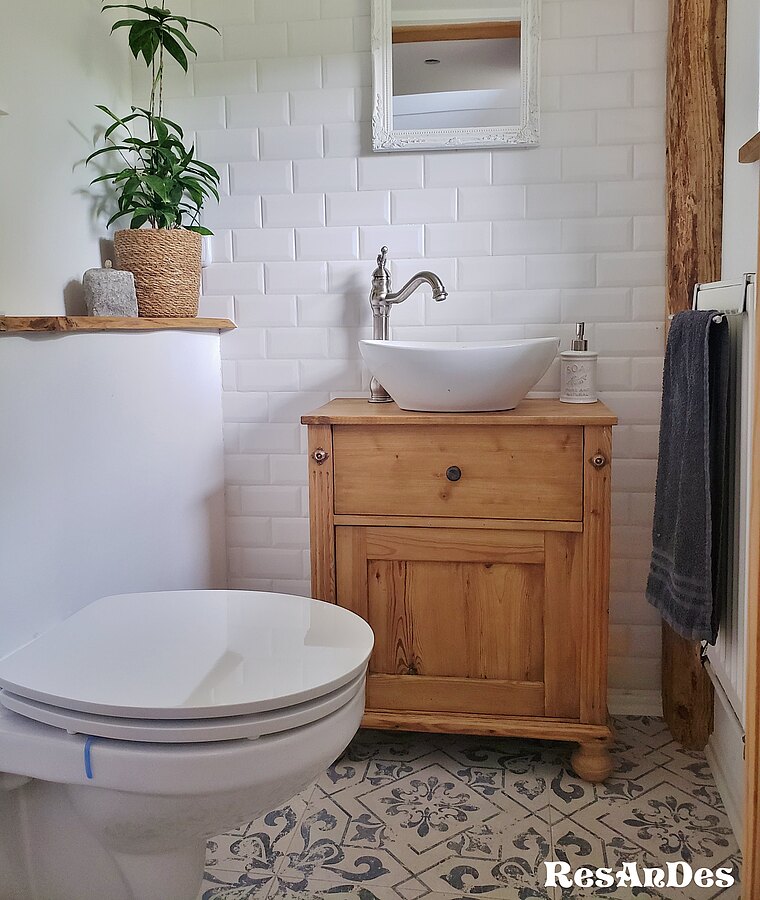 - A small dresser was turned into a base cabinet for a sink